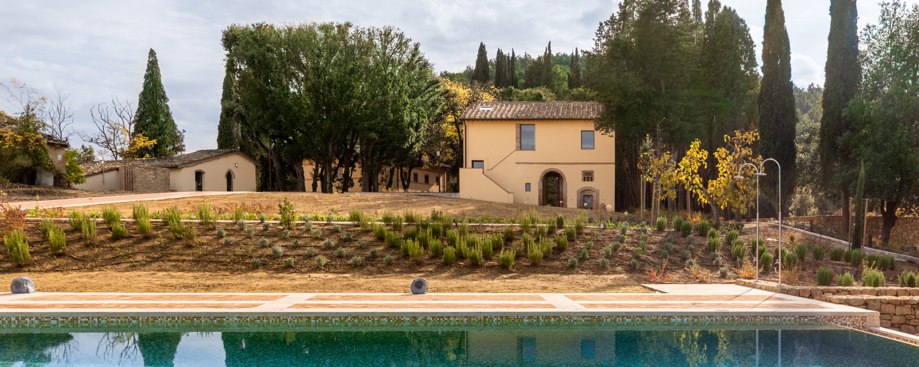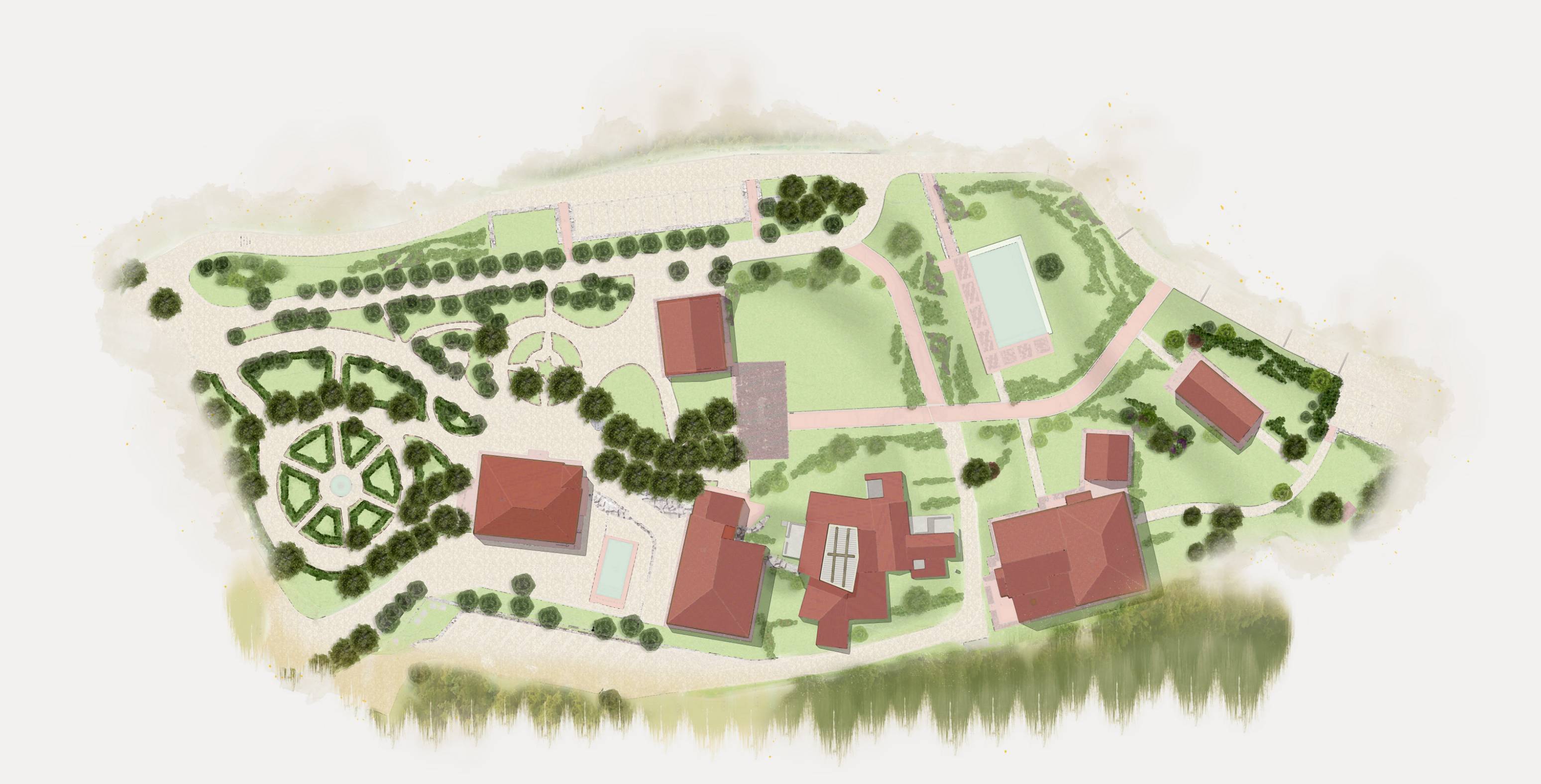 Il progetto si è sviluppato nel corso di più anni ed è iniziato con la ristrutturazione della Villa Padronale, della Stalla e del piccolo fienile che ha subito un’attenta e meticolosa ricostruzione. In un secondo momento sono stati completati gli altri due edifici ed in una terza fase è stato completato il parco storico e tutti gli esterni con le piscine, i parcheggi ed i percorsi carrabili.