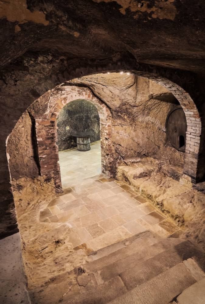 You just have to go down a few steps to feel like you've gone back in time. The original underground wine cellar has been restored, along with an original oil press from the 19th century. This timeless place is the perfect spot for storing and aging your bottles of wine.